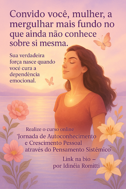 O Curso: Jornada de Autoconhecimento e Crescimento Pessoal através do Pensamento Sistêmico tem como objetivo guiá-la(o) através de uma profunda exploração de si mesma(o), ajudando você a identificar e curar feridas emocionais, fortalecer sua autoestima e desenvolver maturidade emocional. Desta forma conseguirá estar no fluxo da vida e assim prosperar. Este curso foi cuidadosamente estruturado para proporcionar ferramentas e técnicas práticas que irão capacitá-la(o) a superar a dependência emocional, se priorizar e viver uma vida plena e equilibrada.